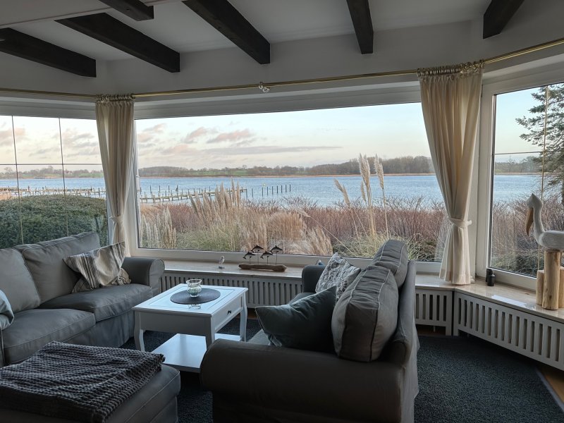 Dieses komfortable Einfamilienhaus besticht durch seinen unverbaubaren direkten Wasserblick. Sowohl vom großen offenen Wohnbereich als auch vom Balkon im OG haben Sie einen fantastischen Blick auf die Klappbrücke und den Yachthafen in Lindaunis. Hier kann man perfekt entspannen und die Seele baumeln lassen. Hochwertige Details wie die weiße Einbauküche, die großzügige Landhaustreppe, Einbauschränke, die Sauna und der Kamin geben diesem Domizil ein besonderes Ambiente. Das Wohnzimmer ist großzügig gestaltet. Nicht nur vom Essplatz aus genießt man den herrlichen Ausblick durch eine große Panoramascheibe (guter Schallschutz). Ein gemauerter Kaminofen sorgt im Winter für Gemütlichkeit. Der grosse eingezäunte Garten mit Gartenhaus und Strandkorb sind ein weiterer Pluspunkt.