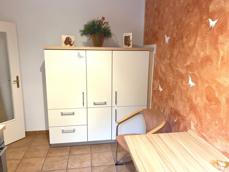 Die Wohnung ist wie auf den Bildern zu sehen in einem modernisierten Zustand.Die hochwertige Küche (Nobilia) umfasst einen Herd mit Backofen, Spüle, eine Kühl- und Gefrierkombination sowie eine Waschmaschine und ist Bestandteil der Wohnung.