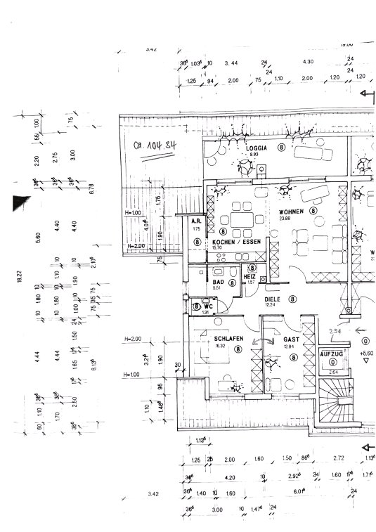 Bei dieser ansprechenden, hochwertigen Immobilie handelt es sich um eine neuwertige 104m2-Penthouse-Wohnung aus Erstbezug im zweiten Obergeschoss einer 8-Parteien-Residenz in Merzig-Stadt, die durch gehobene Innenausstattung (komplett gefliest, V&B, Dornbracht, moderne große weiße Hochglanzküche mit langer Theke) besticht. Wie für modern ausgestattete Wohnungen üblich, gehören zu den 3 schönen Zimmern und dem Badezimmer zusätzlich ein separates Gäste-WC. In der Abstellnische neben der Küche und im Hauswirtschaftsraum ist zusätzlicher Platz zum Aufbewahren und Verstauen geboten. Es handelt sich hierbei um ein barrierefreies Objekt mit einem im Haus befindlichen Aufzug. Zum Apartment gehört auch eine große, in voller Südlage ausgerichtete Loggia mit zwei großen, schattenspendenden elektrischen Marquisen, auf der es sich wunderbar vom Alltag erholen lässt. An heißen Sommertagen beschert die professionelle Klimaanlage innen Abkühlung und angenehme Frische. Für kalte Wintertage besteht durch den bereitstehenden Anschluß die Möglichkeit eines wärmenden Kamins. Außerdem gehört neben einem gemeinschaftlichen Waschraum und dem Tiefgaragenparkplatz, ein großzügiger Kellerraum (aktuell als Fitnessraum umfunktioniert) zur Immobilie, der zusätzlichen ausreichenden Stauraum bietet. Mehr frei verfügbare Stellplätze befinden sich unmittelbar vor dem Haus. Die direkte Umgebung bietet zahlreiche Einkaufsmöglichkeiten und Gesundheitseinrichtungen. Verfügbar ab voraussichtlich Q3/4 2024.