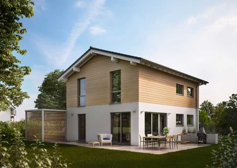 Das Satteldachhaus Cara zeigt schon von außen einige Besonderheiten und seinen ganz speziellen Charme: Neben einer flachen Dachneigung wurden Fenster im Drempelbereich für lichtdurchflutete Räume sowie eine Holzfassade angebracht. Innen überzeugt das Architektenhaus mit einer klaren Grundrissaufteilung auf 121 Quadratmetern Wohnfläche, vier Zimmern und zwei Vollgeschossen.