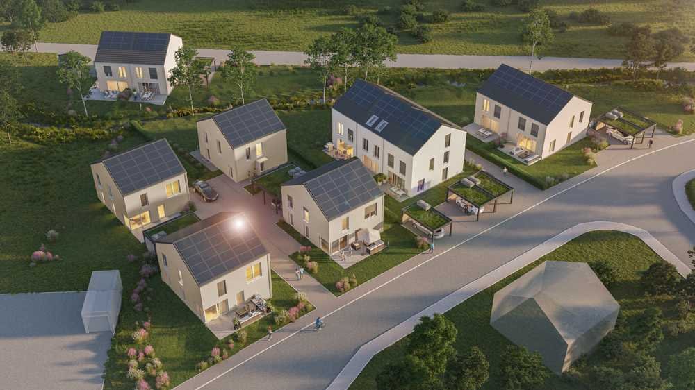 Mit unserem Projekt in Rudersberg-Asperglen entsteht eine Plusenergiehaus-Siedlung, bei der die Photovoltaik-Anlagen mehr Strom erzeugen, als die Bewohner pro Jahr verbrauchen. Der Überschuss wird an das öffentliche Netz verkauft und kann zusätzlich dazu genutzt werden, das E-Auto zu laden. Das Projekt umfasst 4 freistehende Einfamilienhäuser, 4 Doppelhaushälften und 3 Reihenhäuser. Beim Kauf sind Grundstück und Erdarbeiten selbstverständlich inklusive ebenso