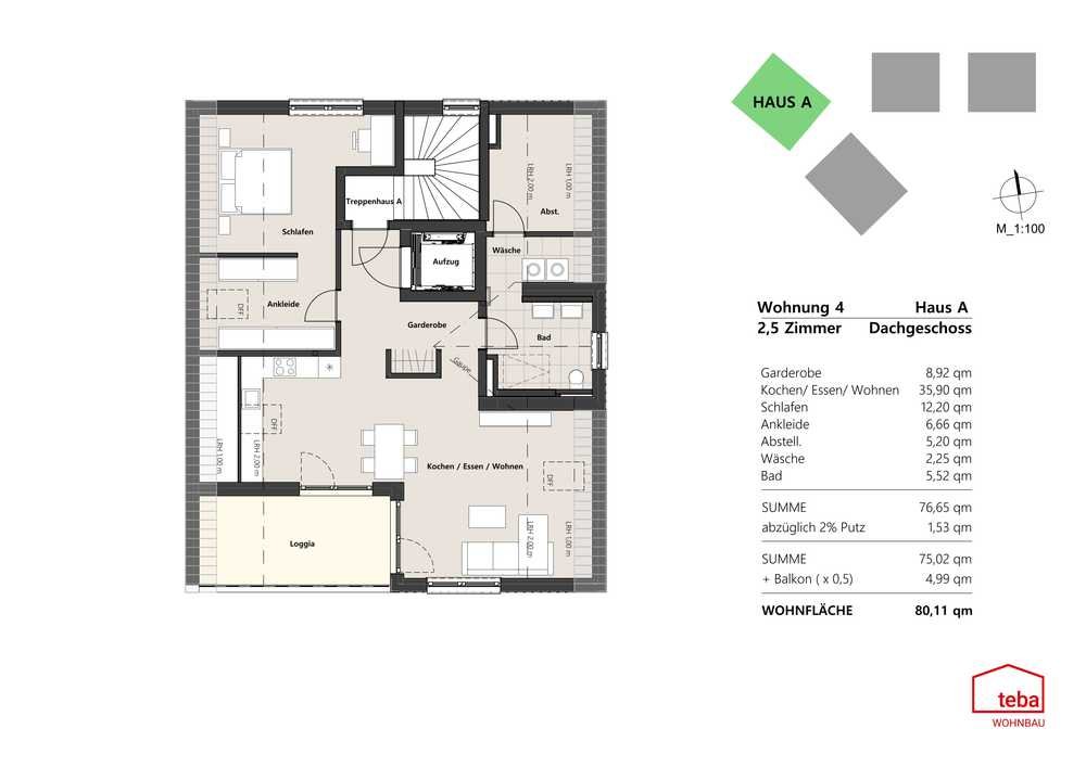 Die Wohnanlage bietet 14 hochwertig ausgestattete 2,0 - bis 4 - Zimmer Wohnungen mit überzeugendem Platzangebot für hohe Ansprüche. Die Wohnungsgrößen reichen von ca. 49 m² bis 126 m². Alle Gebäude werden durch einen ebenerdigen Zugang schwellenlos über die großzügigen Treppenhäuser und mit einem Aufzug erschlossen.