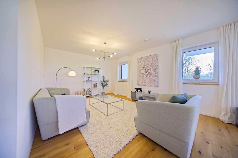 Die Wohnungen mit ihren großen Fensterfronten sind nicht nur äußerst familienfreundlich sondern auch sehr lichtdurchflutet. Sie zeichnen sich unter anderem durch ein mehrschichtiges Eichenparkett sowie eine hochwertige Sanitärausstattung aus.