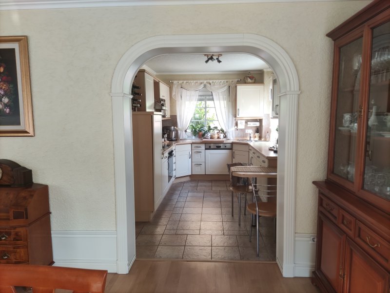 In die Diele der Wohnung eintretend liegt rechter Hand die Küche mit anliegendem Hauswirtschaftsraum. Nach rechts eröffnet sich talseits das große und helle Wohn-Esszimmer mit kleinem Erker und tollem Ausblick ins Grüne. Diesen kann man ebenfalls vom anliegenden Schlafzimmer genießen. Ein großes Familienbad mit Badewanne und Dusche ist auch auf dieser Etage vorhanden. Eine optimale Ausnutzung des Grundstückes, die konsequente Gestaltung im südländischen Stil und eine gute Bauqualität machen diese Immobilie zu einem sehr besonderen und seltenen Objekt in Heidelberg.