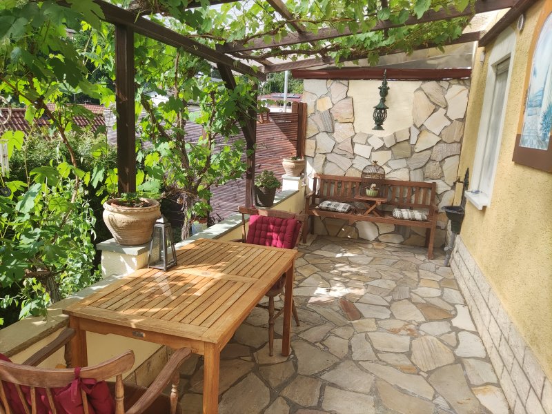 Hier bietet sich die Gelegenheit Eigentümer eines charmanten Zweifamilienhauses in mediterranem Stil in top-gepflegten Zustand zu werden. Die Stimmigkeit des Objektes beginnt bereits in dem mit viel Liebe fürs Detail gestalteten Hanggrundstück. Dieses erstreckt sich über insgesamt 4 Ebenen und bietet wunderbare Plätze zum geselligen Beisammensein und Erholen, wie eine große Terrasse mit gemauertem Grill, überdachte Freisitze, eine Grünfläche mit Springbrunnen sowie ein kleiner Gemüsegarten und all das mit einem herrlichen Ausblick auf den gegenüberliegenden Wald.