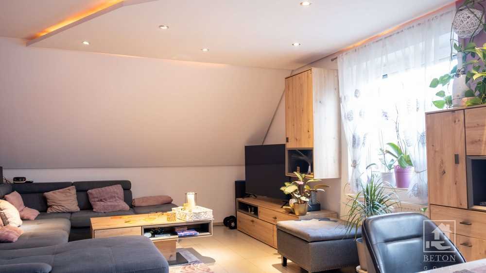 Die Wohnung ist Teil eines 2 Familienhauses und befindet sich im Dachgeschoss.