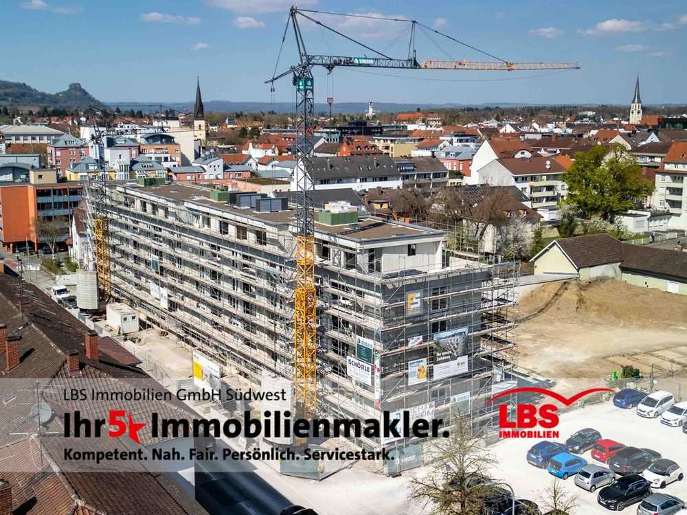 Mit seiner zentralen Lage und dem Blick auf den Hohentwiel wird das Gebäude mit insgesamt 47 Wohnungen auf 5 Geschossen und 3 flexiblen Gewerbeeinheiten im Erdgeschoss errichtet.