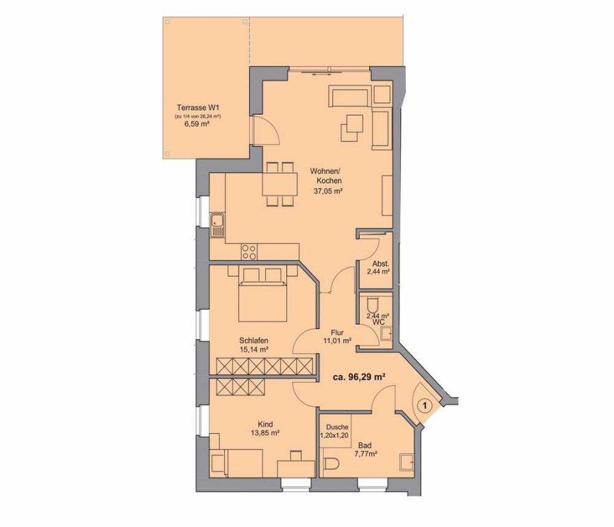 Sie erreichen alle Etagen bequem mit dem Aufzug, sodass Sie in so gut wie jeder Lebenslage barrierearmen Zugang zu Ihrer Wohnung haben. Die Grundrisse überzeugen mit einer modernen, zeitgemäßen und praktischen Raumaufteilung. Größtenteils bodentiefe Fenster bringen angenehmen Tageslichteinfall und ein lichdurchflutetes Raumgefühl mit sich. Selbstverständlich werden die Fensterelemente (3-fach-verglast) mit elektrischen Rollläden ausgestattet. Eigene Terrassen, Balkone und Dachterrassen mit Südausrichtung versprechen tolle Stunden im Freien und komplettieren die optimalen Raumkonzepte.