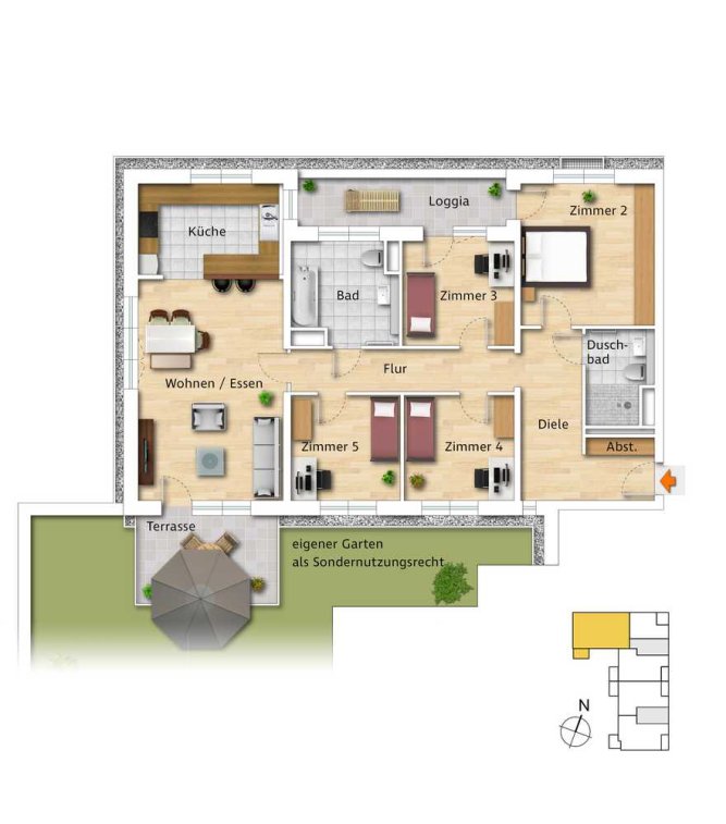 - insbesondere für die Außenflächen der Eigentumswohnungen - sonnige Aussichten garantiert.