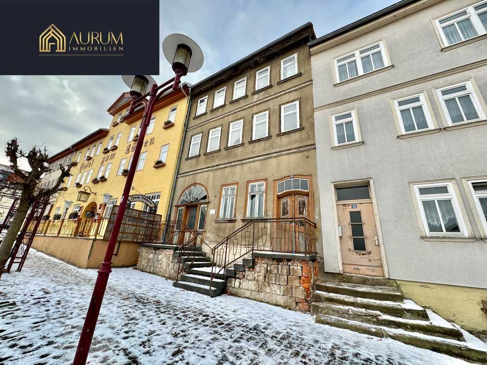 Das hier angebotene dreigeschossige Wohn- und Geschäftshaus aus dem Jahre 1785 steht unter Denkmalschutz. Es steht im Ensemble-denkmal-Bereich „Stadtkern-Königsee". Direkt angrenzend zur Linken ist das örtliche ,,Hotel zum Löwen'' und zur Rechten ein weiteres Wohnhaus. Das Objekt wurde ehemals als Apotheke genutzt und verfügt im Erdgeschoss des Haupthauses über drei getrennte Räume. Teilweise sind noch gut erhaltene historische Stilelemente, wie z.B. das Treppenhaus mit gedrechselten Pfosten vorhanden. Der hinten am Haupthaus angrenzende Seitenflügel wurde ehemals als Labor genutzt und später um eine Wohnung aufgestockt. Ein Gewölbekeller aus dem 16. Jahrhundert ist vorhanden und im trockenen Zustand. Im 1.OG befindet sich ein alter Kachelofen. Ein Energieausweis entfällt, da Baudenkmäler nicht dem GEG unterliegen. Teilweise sind Fliesen, Stein oder Dielen in den Zimmern als Bodenbelag zu finden. Über ein paar Stufen und ein Podest erreicht man den Eingang zum Haus.