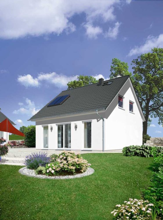 Der Name „Flair 110“ steht für 110 Quadratmeter Wohnerlebnis: Ein Blickfang sind die bodentiefen Fenster, die den Wohnbereich mit viel Licht durchfluten. Hell, gemütlich und weitläufig – genügend Raum zum Entfalten im ganzen Haus.