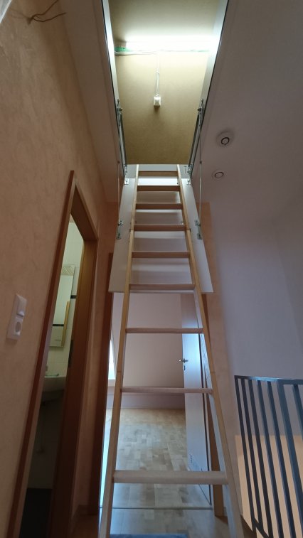 DG: Flur, Bad mit Wanne, 2 Zimmer, Zugang zum ausgebauten Spitzboden. Spitzboden ist geräumig und dient als zusätzliche Abstellkammer. Das Haus hat keinen Keller.