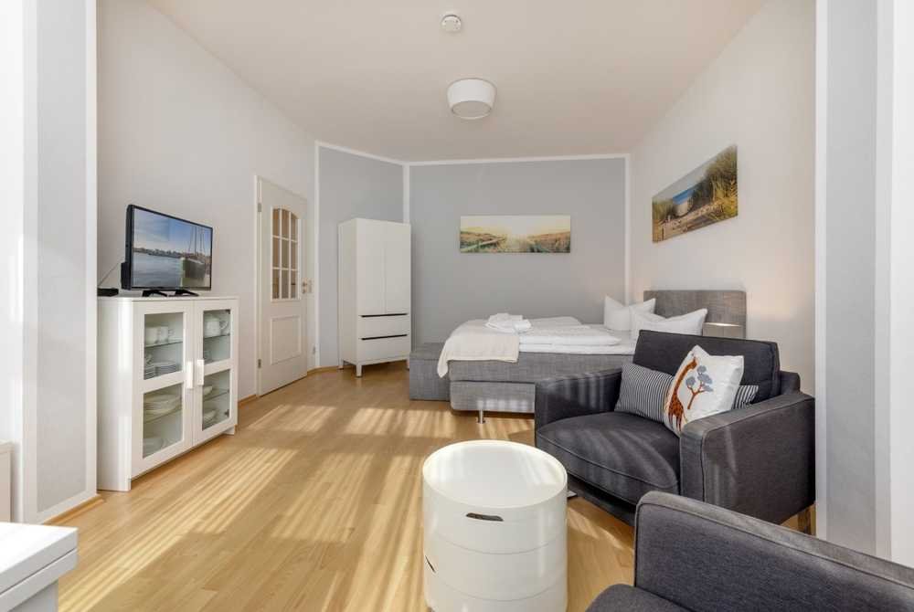 Dieses helle und freundliche 1-Zimmer Apartment erwartet Sie in angenehm ruhiger Ortslage in Nähe zum Kurpark des Ostseebades Binz. Der Ortskern liegt fußläufig ca. 100 Meter entfernt. Die Seebrücke sowie den feinsandigen Sandstrand erreichen Sie in ca. 300 Metern. Das hier angebotene ca. 34 m² große 1-Raum Apartment befindet sich in der „Villa Eden“ im ersten Obergeschoss. Über das Treppenhaus erreichen Sie dieses schöne Apartment. Im Eingangsbereich der Wohnung befindet sich ein kleiner Flur von dem sich die Räume der Wohnung aufteilen. Auf der rechten Seite gelangen Sie in einen kleinen Abstellraum. Geradezu befindet sich das Badezimmer mit Dusche. Auf der linken Seite finden Sie den Wohnbereich, in dem der Schlafbereich mit integriert ist. Aus dem Wohnbereich kommend gelangen Sie direkt in die Küche. Die Wohnungen wurden in den letzten Jahren über die Ferien Service Rügen vermietet. Es gibt in der Ferienanlage die Möglichkeit per Münzen Wäsche zu waschen und zu trocknen. Fahrrad-Abstellmöglichkeiten sind ebenso vorhanden. Im Kaufpreis enthalten ist das Mobiliar sowie der PKW-Stellplatz welcher sich auf dem Parkplatz hinter dem Haus befindet. Ein zusätzlicher Kellerraum ist ebenfalls im Gesamtpreis enthalten. Die Wohnung ist nicht als Dauerwohnsitz geeignet.