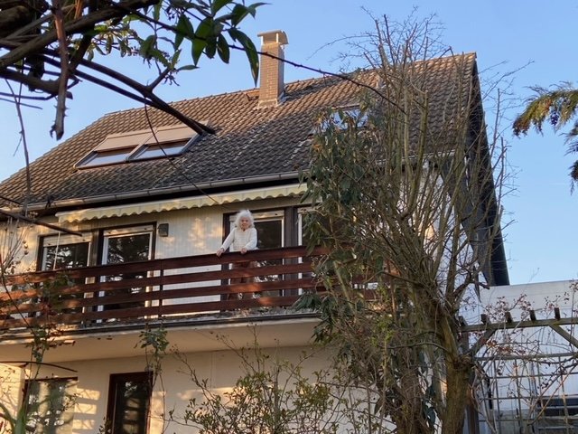 Das Haus verfügt über einen Balkon über die gesamte Zimmerfront im EG und eine große Terrasse vor dem Keller, die mit einer Wendeltreppe verbunden sind.