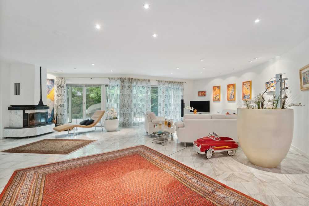 Die herausragende Villa liegt an einer der prestigeträchtigsten Straßen Hannovers. Sie verfügt über ein einzigartiges Architekturkonzept mit wabenartig aneinandergereihten Räumen, die durch eine imposante Zeltdachkonstruktion bedacht werden. Im Baujahr ca. 1996 massiv als Doppelhaus erstellt, vermittelt die Villa im Außenbereich ein fast alpines Flair. Durch die Zusammenlegung im Jahr ca. 2006 wurde das Wohnkonzept zu einem luxuriösen Ensemble verwirklicht und ein herausragender Poolbereich geschaffen. Das Entree gibt sich im charmanten Understatement und führt in die elegante Großzügigkeit des offenen Wohnraums. Hier liegt rechtsseitig die offene Einbauküche an, auf der linken Hausseite findet sich eine weitere Wirtschaftsküche. Bodentiefe Fenster geben den Blick über den angelegten, nahezu uneinsehbaren Gartenraum frei. Die sich an der gesamten Westfassade erstreckende Terrasse ermöglicht verschiedene Ruheorte mit Fokus auf den gut eingewachsenen Garten. Die rechte Hausseite verfügt am Eingangsbereich über ein Gästezimmer mit anliegendem Duschbad. Wellness pur in der linken Haushälfte: Hier bietet ein ca 3 m x ca. 7,80 m großer, sehr attraktiver Pool mit Gegenstromanlage gute Flächen zum Workout. Der im Poolraum integrierte Hamam bietet ein attraktives, blaues Interieur, tiefe Entspannung stellt sich in exklusivem Ambiente ein. Für eine besondere Atmosphäre sorgen an kühlen Tagen auch die zwei Kamine im Wohnbereich. Im Obergeschoss befinden sich zwei sehr große, bis zum First geöffnete Räume, die zurzeit als Arbeits- und Schlafzimmer genutzt werden. Über die vorgeständerten Balkone kann man den Ausblick über den Gartenbereich genießen. Die großzügige Wohlfühlatmosphäre wird jeweils durch ein Bad en suite abgerundet. Weitere kleine Räume spiegeln die attraktive Dachlinienführung des Hauses wider. Eine gemütliche Lesecke findet hier ihren Platz, wie auch der Galerieraum der rechten Gebäudeseite zur Bibliothek geworden ist. Zwei der Räume wurden zu einem kindgerechten Kinderzimmer zusammengelegt. Besondere Sicherheitsaspekte sind bei der Planung eingeflossen, sodass sich dieses außergewöhnliche Haus auch für Bewohner mit erhöhtem Sicherheitsanspruch eignet. Durch die Teilunterkellerung der Villa sind diverse Nebenräume in diesem Bereich zu finden. Gern zeigen wir Ihnen das Gesamtkonzept bei einer ausführlichen Besichtigung.