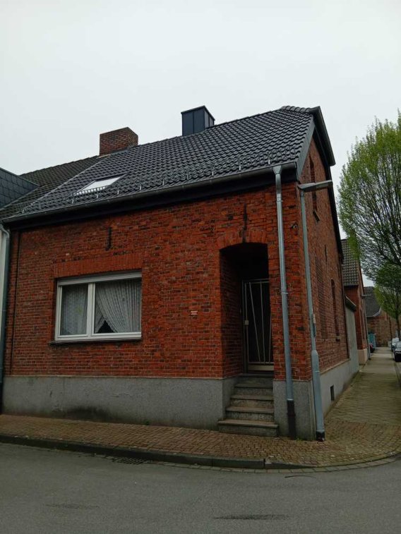 Hier kommt ein sanierungsbedürftiges Reihenendhaus zum Verkauf.