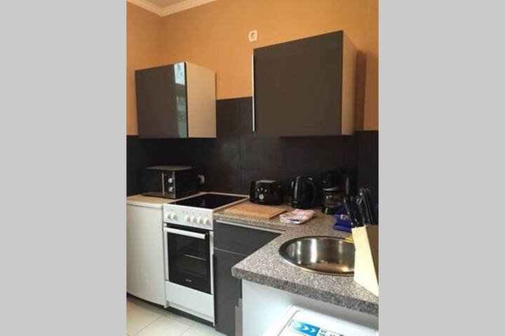 bezugsfreie 2 Z-Wohnung mit gemuetlichen Zimmern und eingebauter Küche. Perfekte Lage unweit der U-Bahn und nahe dem Park und Stadtzentrum Berlins.