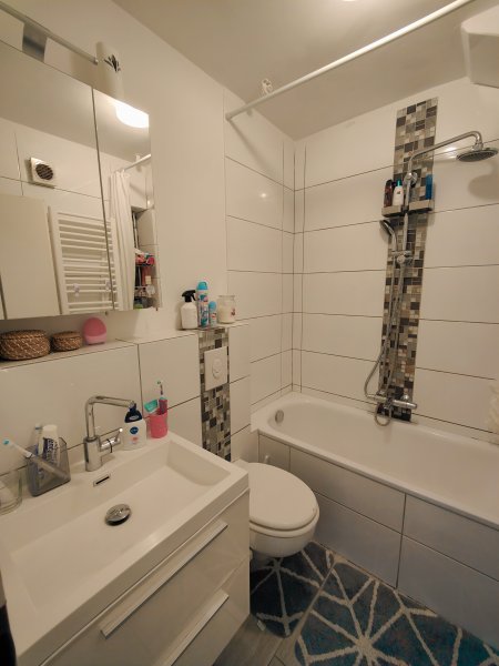 - Badezimmer komplett saniert, neue Badewanne, Spülrandlos Hänge-WC, Hängewaschtisch, Hochfertige Wand und Bodenfliesen.
