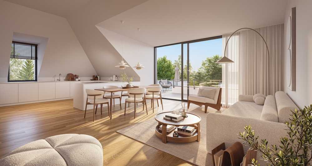 Die Penthouse-Wohnungen ganz oben verfügt über eine großzügige Dachterrasse. Hier lässt sich der Feierabend entspannt bei einem guten Buch und einem Glas Wein oder in geselliger Runde mit Freunden genießen. Die Wohnflächen von ca. 60 m² bis 146 m² bieten sowohl für Singles als auch für Paare und Familien ausreichend Platz.