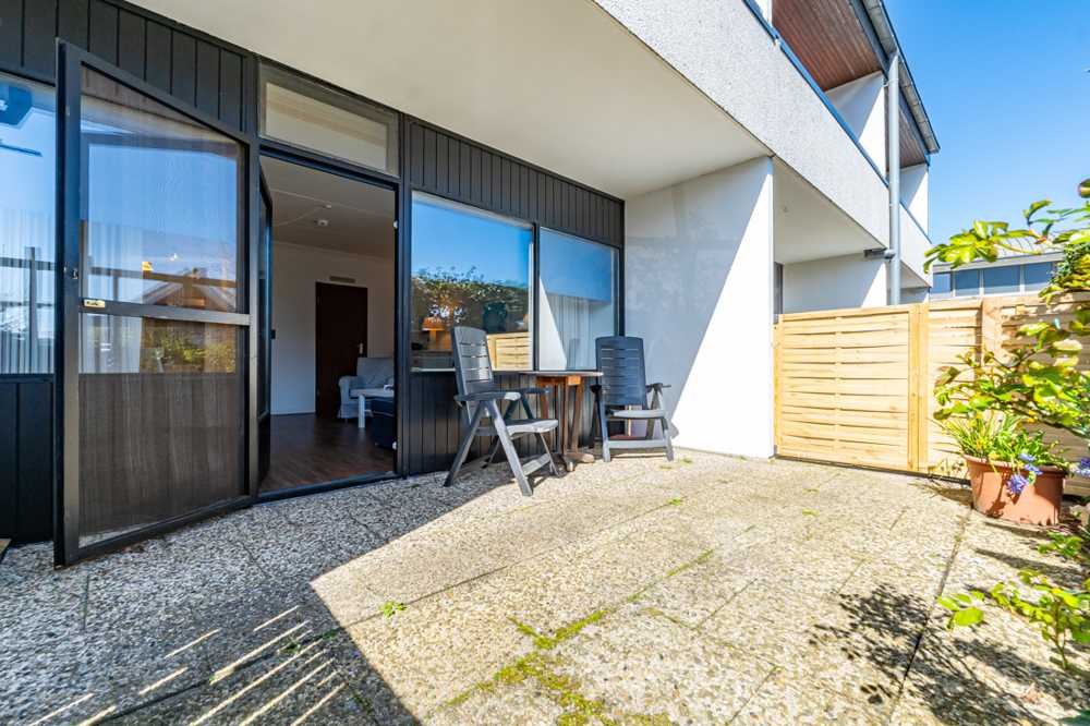 Man betritt diese Wohnung über einen Flur, in dem sich ein Einbauschrank und die neuwertige Küchenzeile befinden. Des Weiteren existiert ein modernes Duschbad-WC sowie der helle Wohn- und Essbereich mit einer geschützten Terrasse. Ein kleiner, abgeschlossener Schlafraum rundet diese Einheit ab. Gemeinschaftswaschmaschine und Trockner im Haus. Ein Kellerabstellraum gehört zu dieser Wohnung, sowie auch ein KFZ-Stellplatz. Ein eigenes Grundbuchblatt ist vorhanden. Diese ebenerdige 1,5-Zimmer-Wohnung bietet ca. 45 m² Wohn-/Nutzfläche. Ideal als Zweitwohnsitz.
