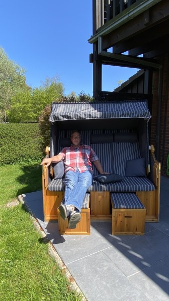 600 m von der Ostsee entfernt. Die Wohnung liegt ebenerdig, hat eine Terrasse mit Strandkorb und mit eigenem Rasen. Die Terrasse ist mit neuen Terrassenplatten verlegt.