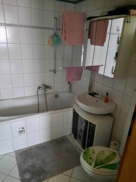 Diese zweistöckige Doppelhaushälfte besticht durch ihren besonderen Charme. Das ca. 1928 gebaute Objekt verfügt über drei Zimmer und wird per Nachtspeicheröfen beheizt. Das Badezimmer mit Fenster, WC, Badewanne und Handtuchheizkörper ist über zwei Stufen abwärts erreichbar. Die Küche mit Elektrogeräten von Bosch und Zanussi wurde erst 2019 eingebaut. Die Treppe führt zu Schlafzimmer und Kinderzimmer/Büro im Obergeschoss. Fenster sind 2fach-verglast, Bodenbeläge Fliesen und Laminat. Ein Kellerraum ist vorhanden, jedoch nicht ausgebaut. Mit einer Garage sowie dem Vorhof finden bis zu drei Autos auf dem Grundstück einen Parkplatz. Praktischen Stauraum und Nutzfläche bieten ausgelagerte Gebäude mit Waschhaus, Lagerraum, Schuppen und Partyraum. Der gepflegte Garten (Westen) lädt zum Verweilen ein, der Grillplatz zu schönen Stunden mit Familie und Freunden. 2011 bekam das Haus einen Vollwärmeschutz und der Hof wurde neu gepflastert. Eine Baugenehmigung bis Ende 2024 für einen Anbau zur Wohnflächenerweiterung von insgesamt ca.