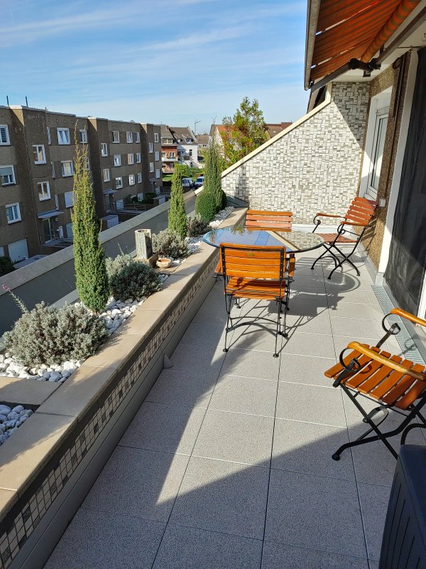 Highlight der Wohnung ist die Terrasse auf dem es sich wunderbar vom Alltag erholen lässt und die offene Küche zum Wohnzimmer.