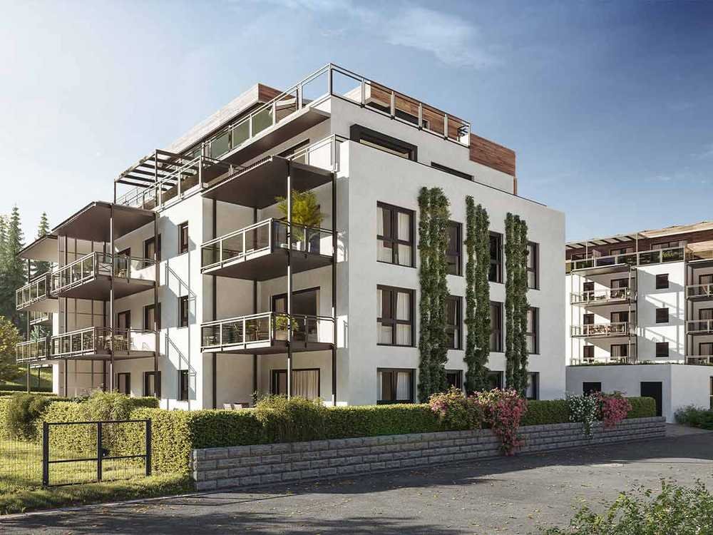 In einer Kombination aus zentraler und doch idyllisch grüner Lage entstehen in Füssen unsere beiden neuesten Mehrfamilienhäuser, erbaut in Massivbauweise. Diese bieten einen atemberaubenden Blick auf das Alpenpanorama und das Schloss Neuschwanstein, sodass Sie von morgens bis abends in den Genuss der Sonne kommen. Jede unserer geräumigen, lichtdurchfluteten Wohnungen zeichnet sich durch großflächige Panoramafenster und großzügige Balkone von bis zu 16 Quadratmetern aus, die eine unvergleichliche Aussicht gewähren.