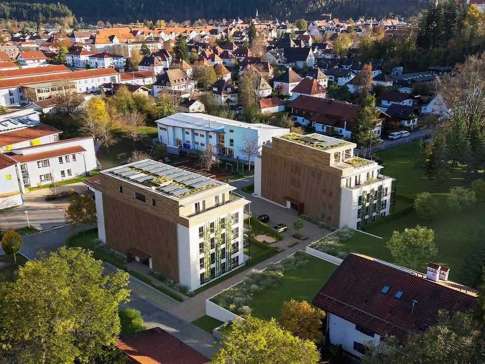 In einer Kombination aus zentraler und doch idyllisch grüner Lage entstehen in Füssen unsere beiden neuesten Mehrfamilienhäuser, erbaut in Massivbauweise. Diese bieten einen atemberaubenden Blick auf das Alpenpanorama und das Schloss Neuschwanstein, sodass Sie von morgens bis abends in den Genuss der Sonne kommen. Jede unserer geräumigen, lichtdurchfluteten Wohnungen zeichnet sich durch großflächige Panoramafenster und großzügige Balkone von bis zu 16 Quadratmetern aus, die eine unvergleichliche Aussicht gewähren.