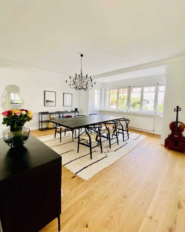 Das Anwesen verfügt über 7 Zimmer, 2 Bäder, 1 Gäste-WC sowie eine Einbauküche. Herrschaftlich hohe Räume und ein Bauzeit typischer Grundriss verleihen dem Objekt ein wunderbare großzügiges