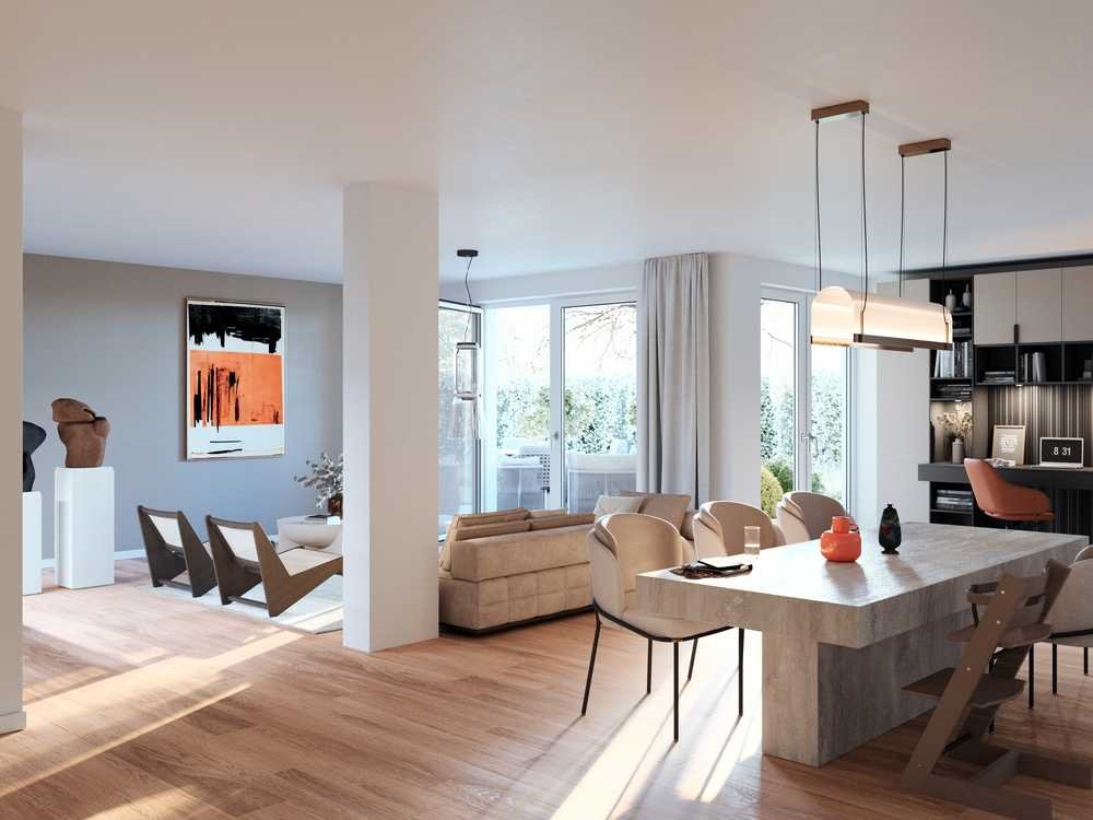 Die lichtdurchflutete Dachterrassenwohnung befindet sich in einer Seniorenwohnanlage, bestehend aus insgesamt 4 Häusern. Im Haus befinden sich 12 weitere Wohneinheiten. In einem der drei weiteren Häuser sind eine Tagespflege, ein mobiler Pflegedienst sowie eine Bäckerei ansässig.