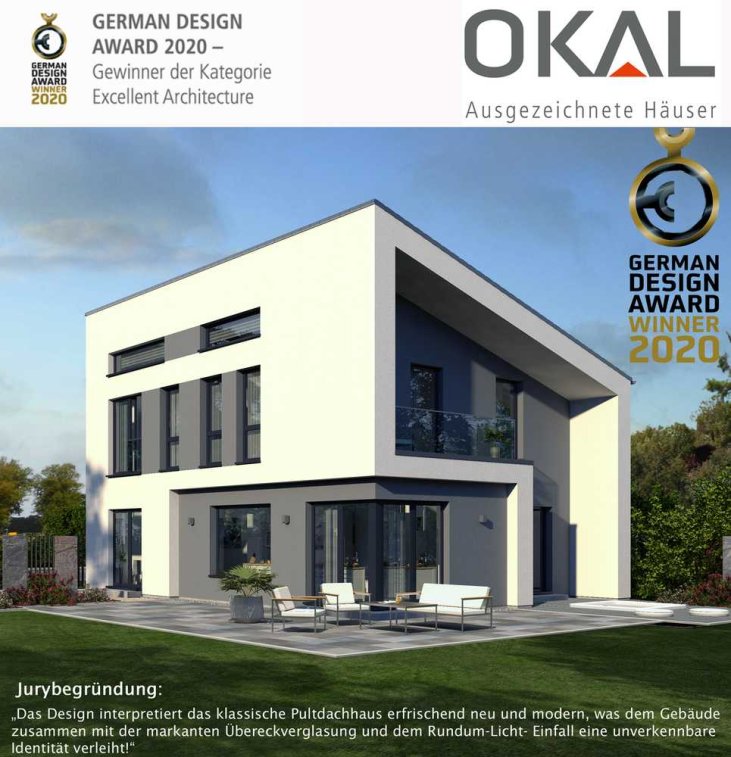 Das unkonventionelle OKAL Pult 13 besticht mit Rundum-Lichteinfall: bodentiefe Fenster, Übereckverglasung. Zusätzliche Oberlichter erfüllen alle Räume mit Helligkeit. Eine intelligente Haustechnik und die nachhaltige Bauweise ergänzen dieses raffinierte Bauwerk.