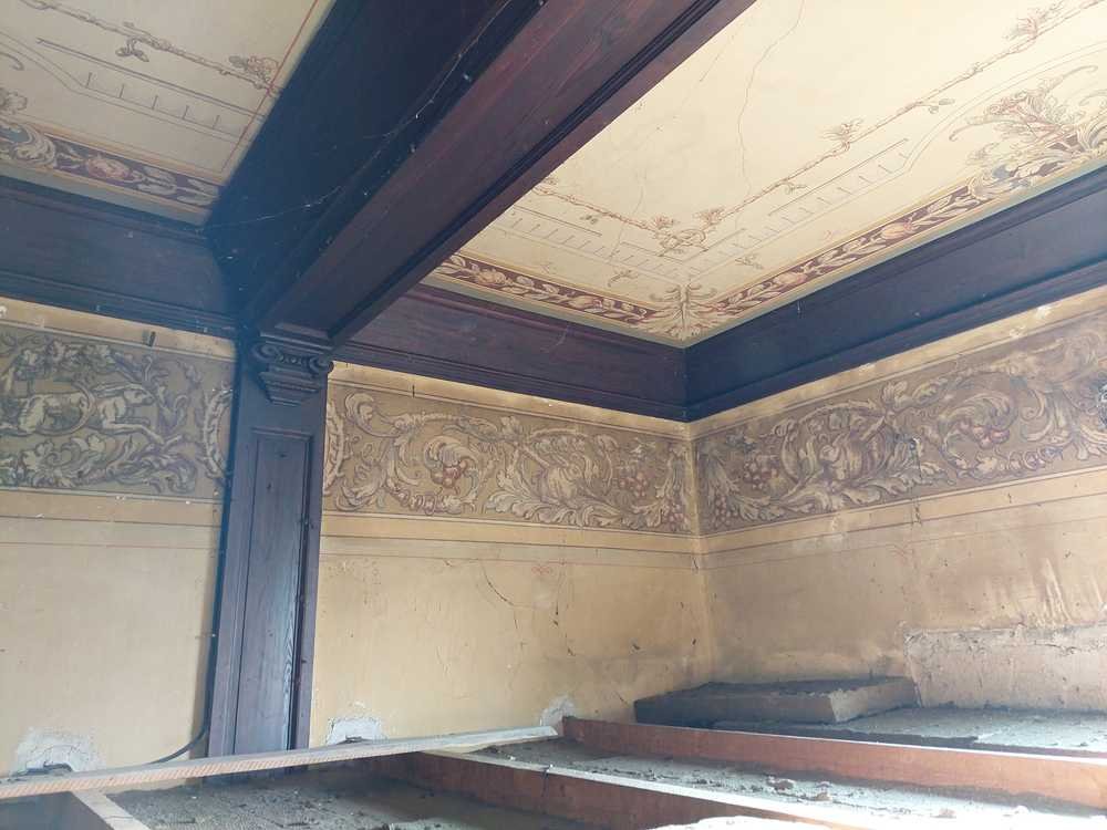 - in einem Teil des Gebäudes befindet sich ein ehemaliger Feiersaal mit schöner Malerei aus der Zeit der Erbauung