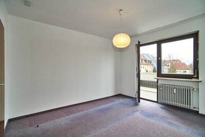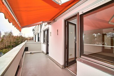 Der nach Westen orientierte Balkon ist sowohl vom Wohn- als auch vom Schlafzimmer aus zu erreichen und liegt absolut ruhig. Von ihm aus genießt man einen wunderbaren Blick auf die Gärten und die Einfamilienhaus - Bebauung der unmittelbaren Umgebung. Hier zeigt sich der „Gartenstadtcharakter“ des Stadtteils von seiner besten Seite!