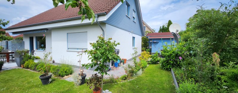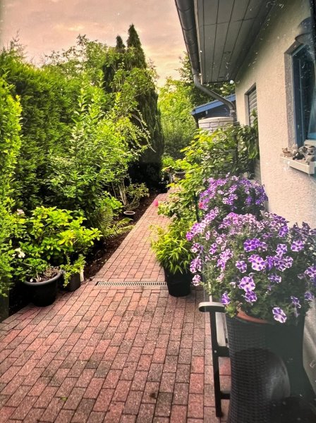 2 Stellplätze, geräumiges Gartenhaus, große Terrasse und schön bepflanzter Garten