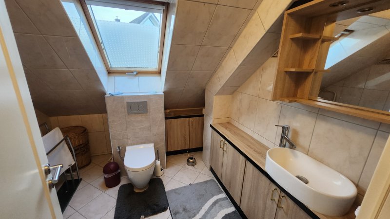- Obergeschoss: 4 Räume teilweise mit unverbaubaren Ausblick, ein Badezimmer mit Dusche und WC, (Möglichkeit eine zweite Küche einzubauen, Anschlüsse liegen)