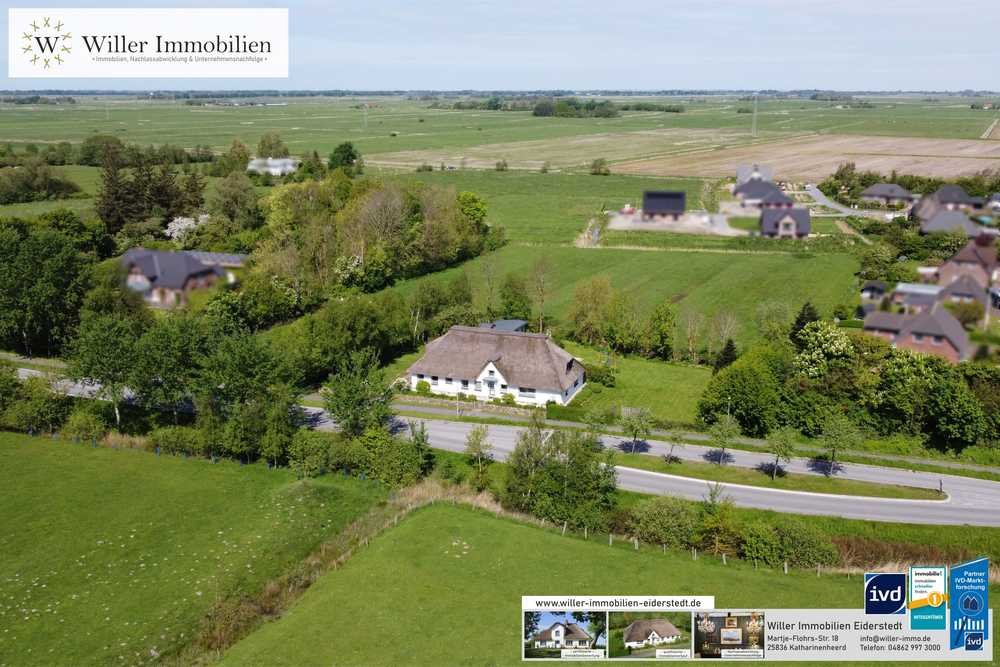 Entdecken Sie ein einzigartiges Mehrgenerationenhaus unter Reet auf der idyllischen Halbinsel Eiderstedt. Dieses großzügige Anwesen bietet 3 stilvoll eingerichtete Wohnungen, einen weitläufigen Garten, Garagen und PKW-Stellplätze. Perfekt für generationsübergreifendes Wohnen oder eine Kombination aus privatem Wohnen und Vermietung, bietet es Raum für individuelle Bedürfnisse und kreative Entfaltung. Unzählige Nutzungsmöglichkeiten machen dieses Haus zum idealen Ort für harmonisches Miteinander und vielfältige Lebensentfaltung.