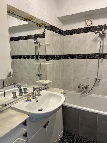 Die Wohnung ist mit Fliesen und Laminatboden ausgestattet.