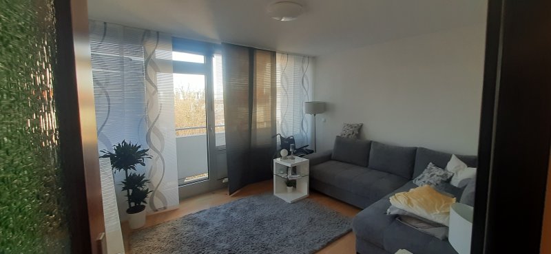 Die Wohnung besitzt 3 Zimmer (Wohn-/Esszimmer ist ein riesiger Raum + 2 Schlafzimmer) und ist sehr gut geschnitten. Von der Haustür aus erreicht man einen breiten Flur, von wo man auf der linken Seite die Schlafzimmer und das Badezimmer erreicht und auf der rechten Seite das Wohnzimmer und die Küche. Das Wohn- und Esszimmer sind räumlich nicht voneinander getrennt und bieten viel Platz. Selbst bei großen Möbelstücken wird nie eine beengte Atmosphäre erzeugt. Durch die zwei Balkone und großzügiger Auslegung der Fenster kommt zu jeder Jahreszeit sehr viel Licht in die Wohnung. Das Badezimmer wurde im Jahre 2023 modernisiert und mit hochwertigen Materialien verbaut. Die Badewanne wurde durch eine begehbare Dusche ersetzt.