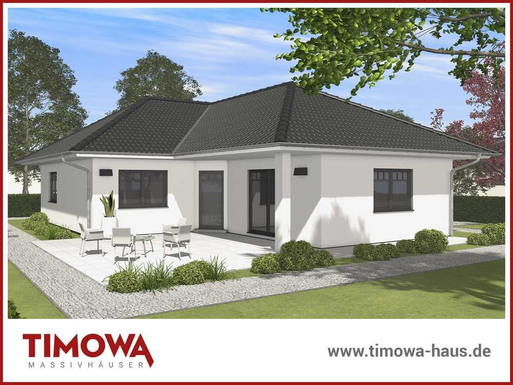 Unser Angebot stellt ein Planungsbeispiel dar. Das Baugrundstück kann auch mit einem anderen Haustyp bebaut werden. Weitere Grundrisslösungen finden Sie in der TIMOWA-Häusergalerie auf unserer Webseite [www.timowa-haus.de].