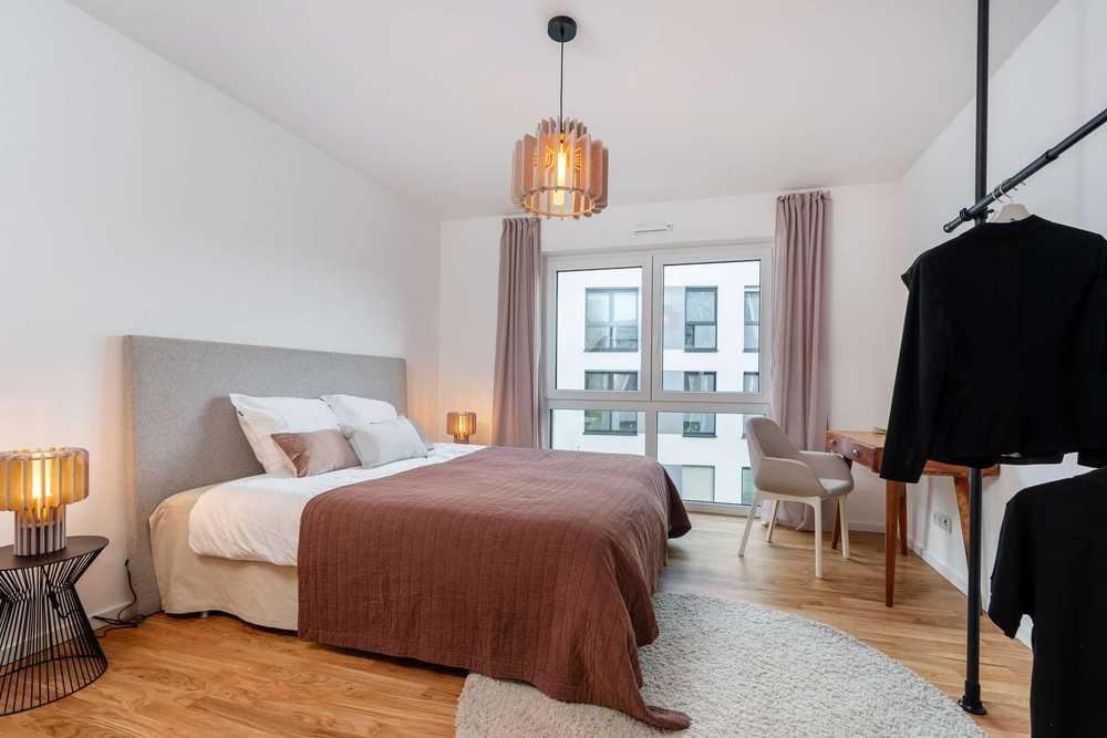Zu rechter Hand - vorbei am Abstellraum und Gäste-WC - gelangen Sie zu dem privaten Bereich: ein geräumiges Schlafzimmer mit vielen Fenstern, und ein Badezimmer mit bodengleicher Dusche, Tageslicht und Waschmaschinenanschluss.