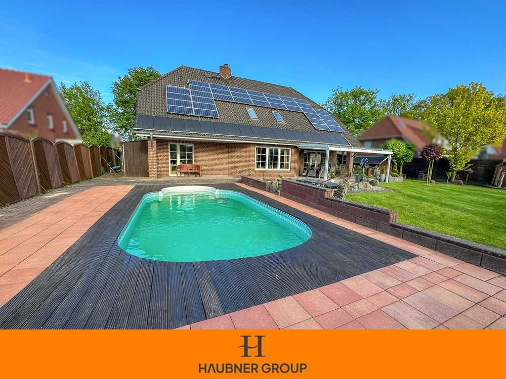 Entdecken Sie dieses imposante Einfamilienhaus, erbaut im Jahr 1994, das durch seine Lage in einer der begehrtesten Wohngegenden Beverstedts besticht. Auf einem großzügigen Grundstück von etwa 1200 m², das viel Raum für Individualität und Gartenkunst bietet, finden Sie nicht nur Privatsphäre, sondern auch unzählige Gestaltungsmöglichkeiten. Das Haus besticht durch eine perfektionierte, familienfreundliche Raumaufteilung mit architektonisch klaren Strukturen auf ca. 300 m² Wohnfläche. Das Erdgeschoss ist unterteilt in Diele, Küche, Abstellraum und Speisekammer, Wohn-/Esszimmer, Schlafzimmer, Büro/Arbeitszimmer, Gäste-WC + Vollbad mit Fußbodenheizung. Sie betreten das moderne Haus durch einen lichtdurchfluteten Eingangsbereich. Das Herzstück des Hauses ist der über 50 m² große Wohn-/Essbereich, welcher mit einem Kamin ausgestattet ist. Dieser sorgt in den kälteren Jahreszeiten im Haus für eine wohlige Wärme. Ein optimal geplanter Lichteinfall sorgt für eine angenehme und freundliche Atmosphäre. Zudem gelangen Sie von hier aus auf die herrliche, überdachte Terrasse, die Sie zum geselligen Beisammensein mit Freunden und Familie einlädt. Dieses charmante Anwesen besticht nicht nur durch sein gemütliches Raumklima, sondern auch durch seinen traumhaften Garten. Der zentrale Blickfang ist zweifellos der malerische Teich, der eine idyllische Atmosphäre schafft. Doch das ist noch nicht alles. Der Höhepunkt des Gartens ist zweifellos der großzügige, beheizte Swimmingpool. Dieser wird umweltfreundlich und kosteneffizient durch die Solaranlage auf dem Dach betrieben. Hier können Sie schwimmen und sich entspannen, während Sie die atemberaubende Aussicht auf Ihren eigenen Garten genießen. Das Dachgeschoss ist unterteilt in vier große Schlaf/Kinderzimmer, sowie einem Badezimmer in Vorbereitung, welches Sie ganz nach Ihren Belieben gestalten können. Zu den weiteren Annehmlichkeiten zählen eine Garage und acht PKW-Stellplätze direkt vor dem Haus. Lassen Sie sich bei einem persönlichen Besichtigungstermin von dem wohnlichen Charakter und der stilvollen Atmosphäre dieses exklusiven Anwesens überzeugen und entdecken Sie die vielen Extras, die dieses Zuhause zu bieten hat.