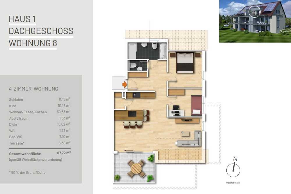 Über den Dächern von Weilstetten - Moderne 3,5-Wohnung im Dachgeschoss Haus1 Wohnung 8