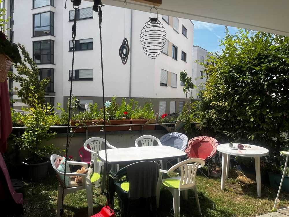 Die helle Terrassenwohnung, hoch parterre, befindet sich in einem Mehrfamilienhaus.