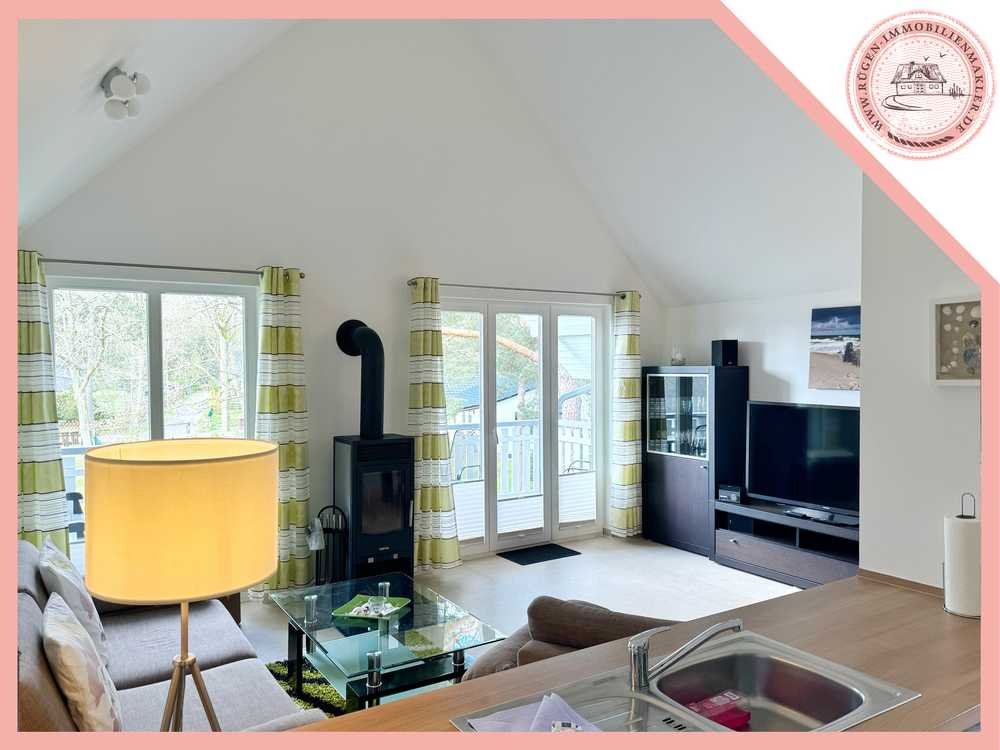 Die moderne und geschmackvoll eingerichtete Eigentumswohnung aus dem Jahr 2011 befindet sich ruhig und dennoch zentral gelegen, nur etwa 200 m vom feindsandigen Ostseestrand des Seebades Glowe entfernt. Eingebettet in eine beschauliche Ferienhaussiedlung verspricht sie ihren Gästen eine Atempause vom Berufsalltag in harmonisch gemütlicher Atmosphäre. Auf ca. 57 m² präsentiert sich das gepflegte Ferienappartement von der besten Seite, denn firstoffenen Räume sorgen für ein lichtes und ungezwungenes Wohnklima. Die Wohnung befindet sich im Dachgeschoss eines Mehrfamilienhauses mit insgesamt 4 Wohneinheiten. Sie gliedert sich in einen großzügigen Wohnbereich mit offener Küchenzeile, Kamin und angrenzendem überdachten Balkon, ein helles Schlafzimmer mit TV sowie ein Tageslichtbadezimmer mit Dusche und Infrarotsauna. Das Appartement verfügt außerdem über eine eigene Gastherme, die mit einer Solarthermie auf dem Dach gekoppelt ist, einen kleinen Schuppen für Fahrräder und natürlich einen PKW-Stellplatz. Im Kaufpreis ist das komplette Inventar und Mobiliar enthalten, sodass die Vermietung an Feriengäste nahtlos weiterlaufen kann.