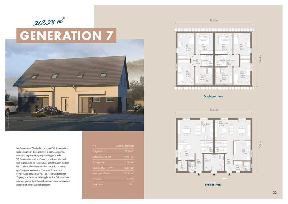 Im Generationenhaus befinden sich zwei großzügige Wohneinheiten die Sie zum einen nutzen können, um gemeinsam zu Bauen oder um eine Wohneinheit zu vermieten. Jede Einheit erstreckt sich über zwei Geschosse und bietet drei Schlafräume, damit auch der Familienplanung nichts im Wege steht. Durch ein Dachflächenfenster scheint die Sonne direkt in Ihr Bad und macht es somit zu Ihrer persönlichen Wohlfühl-Oase. Der Preis gilt für zwei Wohneinheiten zusammen.