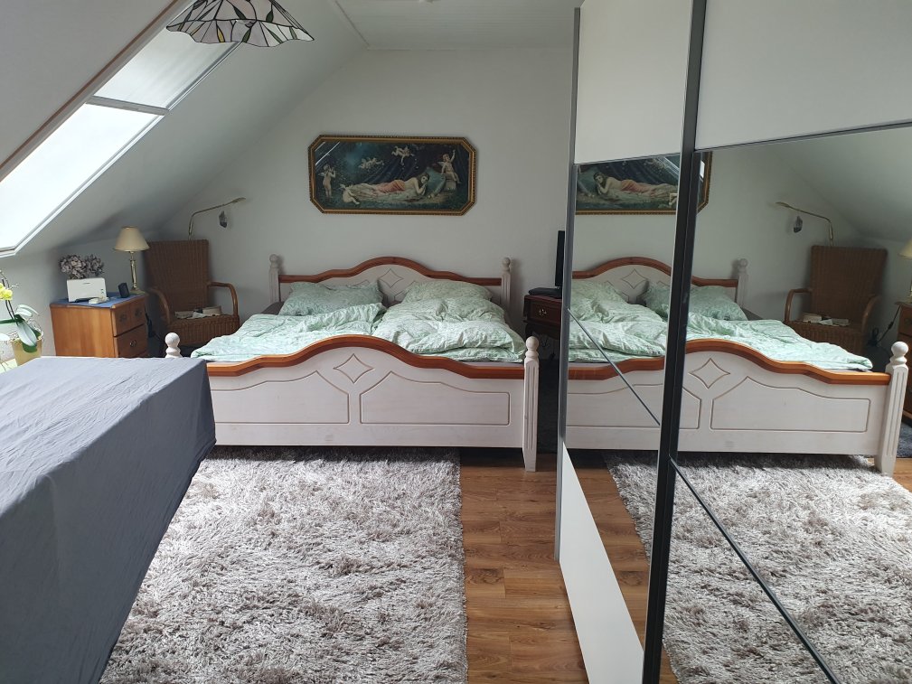 In der oberen Etage befinden sich 2 Zimmer, sowie ein Bad mit Wanne und Dusche. Der Dachboden kann zu einem weiteren Zimmer ausgebaut werden.