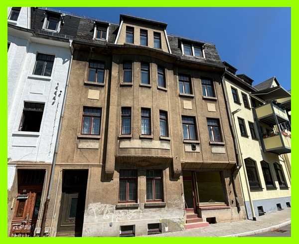 Das leerstehende Mehrfamilienhaus + Gewerbeeinheit steht in einer geschlossenen Häuserzeile im Stadtzentrum von Glauchau und wurde 1910 gebaut.