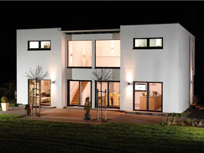 Die Architektur des Hauses ist im klassischen Bauhausstil gehalten. Der Grundriss ist klug durchdacht. Im Erdgeschoss befinden sich ein offen gestalteter Ess- und Kochbereich mit separatem Wohnzimmer und einem praktischen Haustechnik-/Hauswirtschaftsraum, direkt neben der Küche. Ein Zusatzraum, der als Homeoffice, Gäste-, Schlaf- oder Hobbyraum genutzt werden kann, bietet zusätzlichen Komfort. Das Treppenhaus ist mittig angeordnet. Neben dem Eingangsbereich ist ein Gäste-/WC eingeplant.