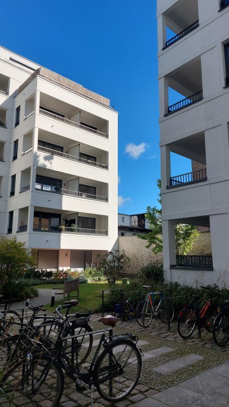 grünem Garten. Die angebotene Wohnung befindet sich in der 4.OG im Vorderhaus
